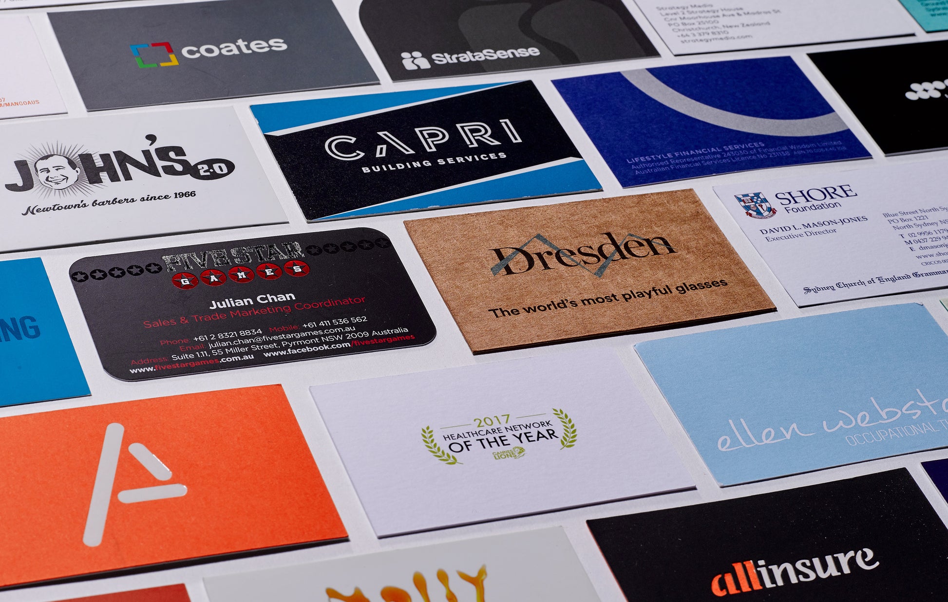 Full colour premium printed business cards printed on 350gsm art aboard - supplied celloglazeon both sides included free of charge.